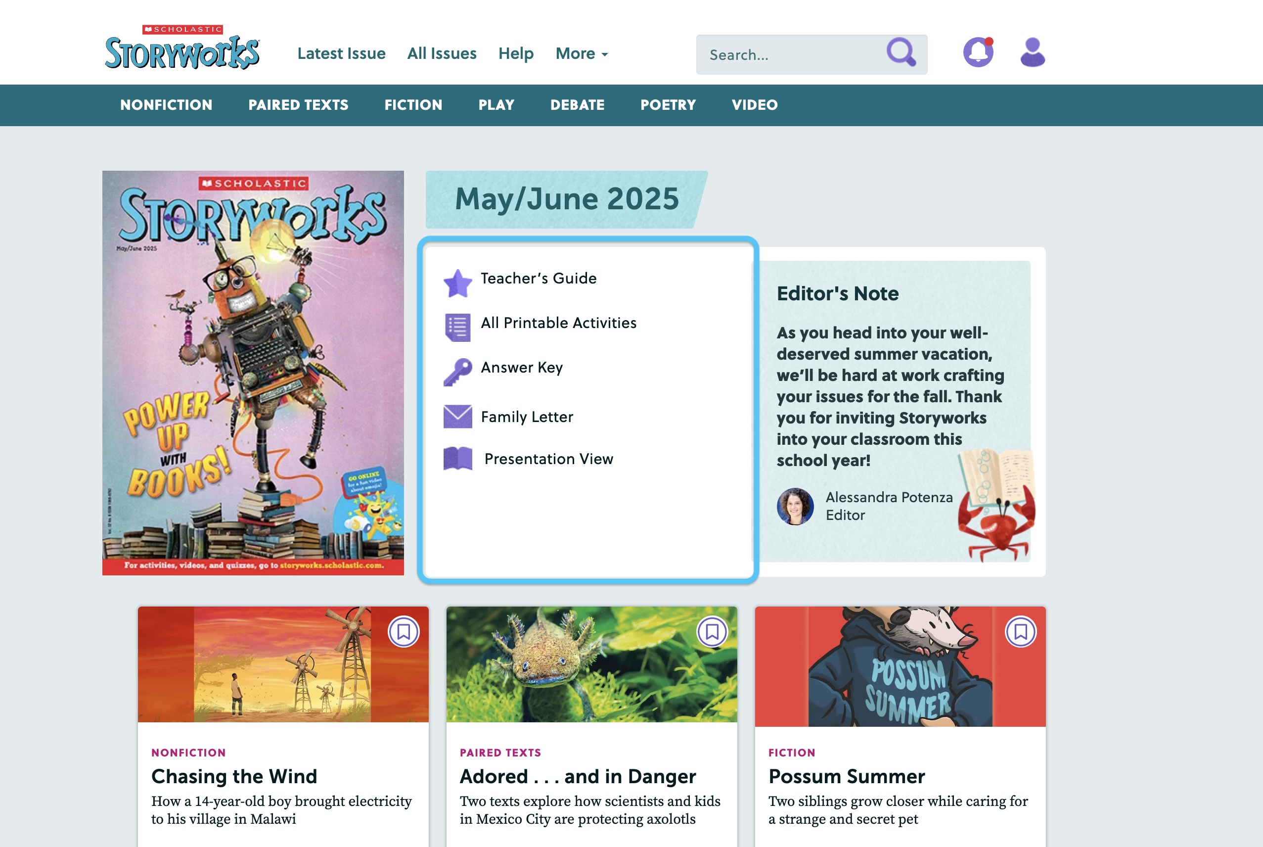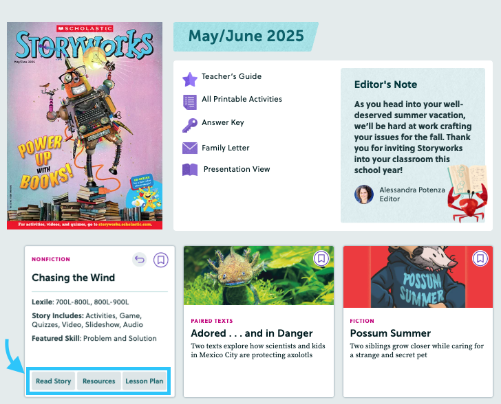Each issue of Storyworks comes with a wealth of resources, including engaging videos, detailed lesson plans, interactive skill-building activities, and more!